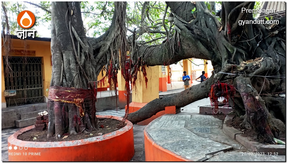 मंदिर परिसर में वृक्ष भी है और उसपर लिपटे मनौती के धागे भी। भक्तिमय वातावरण है वहां। भक्ति है, भय नहीं है।