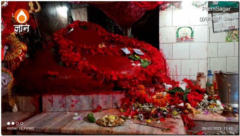 नंदिकेश्वरी शक्तिपीठ के बारे में कहा जाता है कि यहां सती का हार गिरा था। सती के हार गिरने की कथा मैहर (माई का हार) में भी है। सती क्या एकाधिक हार पहने थीं? कहीं कोई स्पष्ट उल्लेख नहीं है। शक्तिपीठ स्त्रोत के अनुसार यहां के भैरव नंदिकेश्वर हैं – नंदी के देव। नंदिनी माता का शाब्दिक अर्थ है ‘जो आनंद की देवी हैं’। और आज प्रेमसागर जाने अनजाने में आनन्दित ही लगे अपनी बातचीत में मुझे। एक बड़ा सा प्रस्तर खण्ड है, गोल सा, जिसपर सिंदूर पुता है कि सब कुछ लाल नजर आता है। देवी का वही प्रतीक है। उसी की पूजा करते हैं भक्त।