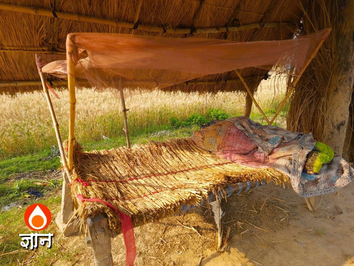 इस मड़ई का सम्बंध जरूर खेत से ही रहा होगा क्योंकि रात भर पहरा देने के उद्देश्य से इसमें सोने की व्यवस्था है।
