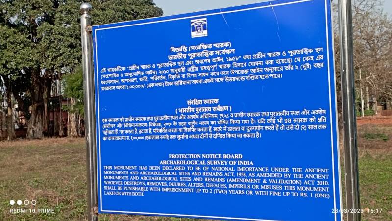 प्रेमसागर के साथ ए.एस.आई. के गार्ड, मीनार और शृन्खलादेवी स्थल पर ए.एस.आई. का पट्ट।