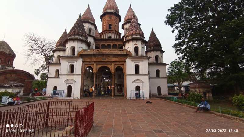 प्रेमसागर के साथ हुई इस घटना ने मुझे व्यथित कर दिया। उस जगह से दूर आने पर मैंने उन्हें पास के हंसेश्वरी मंदिर के दर्शन करने की सलाह दी। शृन्खला देवी शक्तिपीठ की अनुपस्थिति में इस पुराने मंदिर में लोग जाते हैं और इसे शक्तिपीठ की तरह मानते हैं। इस मंदिर को सन 1799 में राजा न्रिशिनदेबराय महाशय जी ने बनवाया था। विकिपेडिया के अनुसार इस मंदिर का स्थापत्य तेरह मीनारों का है और “तांत्रिक सतचक्रभेद” दर्शाता है। मंदिर की मीनारों की पांच मंजिलें शरीर के पांच अंगों की प्रतीक हैं।