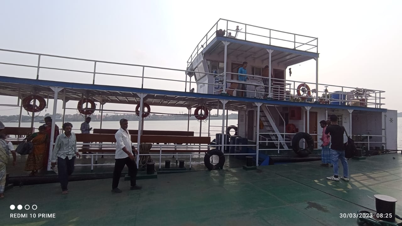 बेलूर मठ से आद्या शक्ति धाम। प्रेमसागर लॉन्च से पुन: गंगाजी पार किये। “बड़ा अजीब रहा भईया। हम टिकट की लाइन में लगे थे। इग्यारह रुपये का टिकट था, मेरे पास पचास का नोट था। पर काउण्टर पर आदमी ने बताया कि उनके पास खुल्ला नहीं है। उन्होने कहा कि मैं लॉन्च में उस पार चला जाऊं और वहां टिकट खरीद लूं। दूसरी पार आने पर टिकट चेक करने वाले गार्ड साहब ने बताया कि उन्हें मेरे बारे में खबर मिल गयी है और मैं टिकट काउण्टर पर टिकट ले सकता हूं। पर भईया इस पार के काउण्टर पर भी खुल्ला नहीं था। काउण्टर वाले सज्जन ने मुझे वैसे ही जाने दिया।”