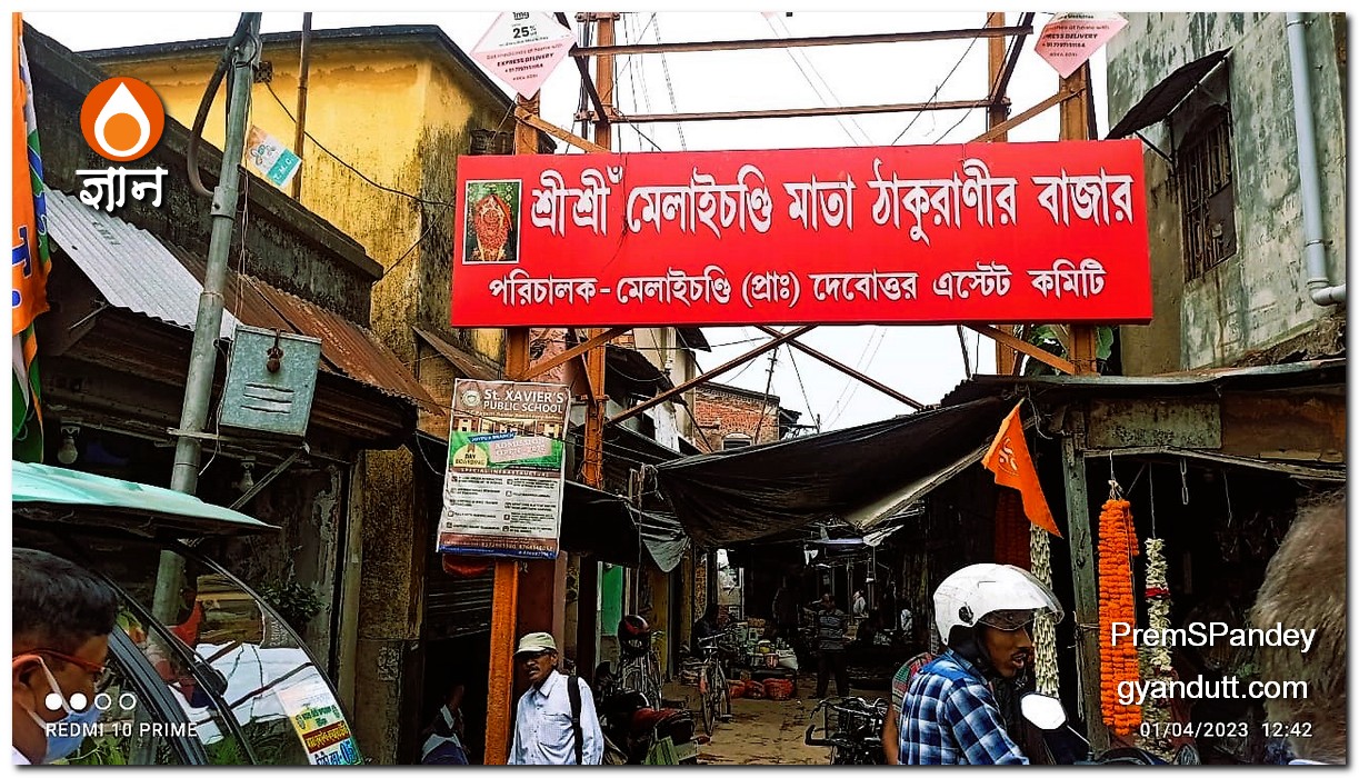 दोपहर एक बजे के पहले उन्होने भ्रामरी शक्तिपीठ के दर्शन कर लिये। इस स्थान को मेलाई चण्डी शक्तिपीठ भी कहा जाता है। मांं महाकाली के वपु को समर्पित शक्तिपीठ। हावड़ा जिले के उलुबेरिया तहसील में आम्टा जगह है। वहां है यह मंदिर। वैसे भ्रामरी देवी के नाम से एक अन्य शक्तिपीठ जलपाईगुड़ी में भी है। गीताप्रेस की शक्तिपीठ दर्शन पुस्तक में इस स्थान का नहीं, जलपाईगुड़ी के त्रिस्त्रोता का जिक्र है।
