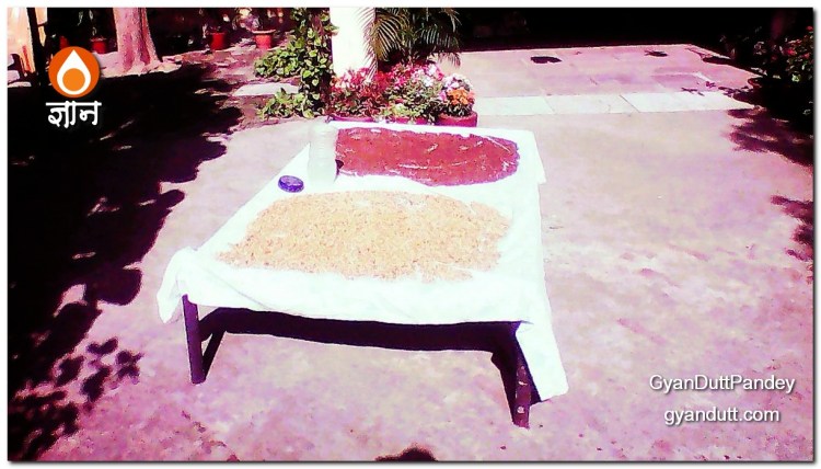 मेरे पत्नीजी इधर उधर फोन कर रही हैं। उनके अनुसार मुझसे तो यह लॉजिस्टिक मैनेजमेण्ट हो नहीं सकता। कटका पर चार बोरे लदाना (“सुरजवा अभी तो कर दे रहा है काम, पर अगली बार बिधायकी का चुनाव लड़ेगा तब थोड़े ही हाथ आयेगा!”), इलाहाबाद सिटी स्टेशन पर उतरवाना (“स्टेशन मास्टर साहब का फोनै नहीं लग रहा”), फिर रोड वैहीकल का इन्तजाम रामबाग से शिवकुटी लाने का (“सिंह साहब संझा साढ़े चार बजे भी तान कर सो रहे हैं – जरूर दोपहर में कस के कढ़ी-भात खाये हैं! चांप के।”)।