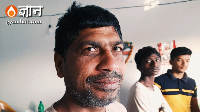 भैंस के दूध का मेधा कुंद होने से सम्बंध है – यह बात मुझे रोचक लगी। उन सज्जन का सूरज की रोशनी में चित्र लिया। उन्होने नाम बताया – मूरत यादव। उनका चित्र लेने को देख कर बाकी लोग भी भैंस के दूध और बुद्धि पर चर्चा करने लगे।