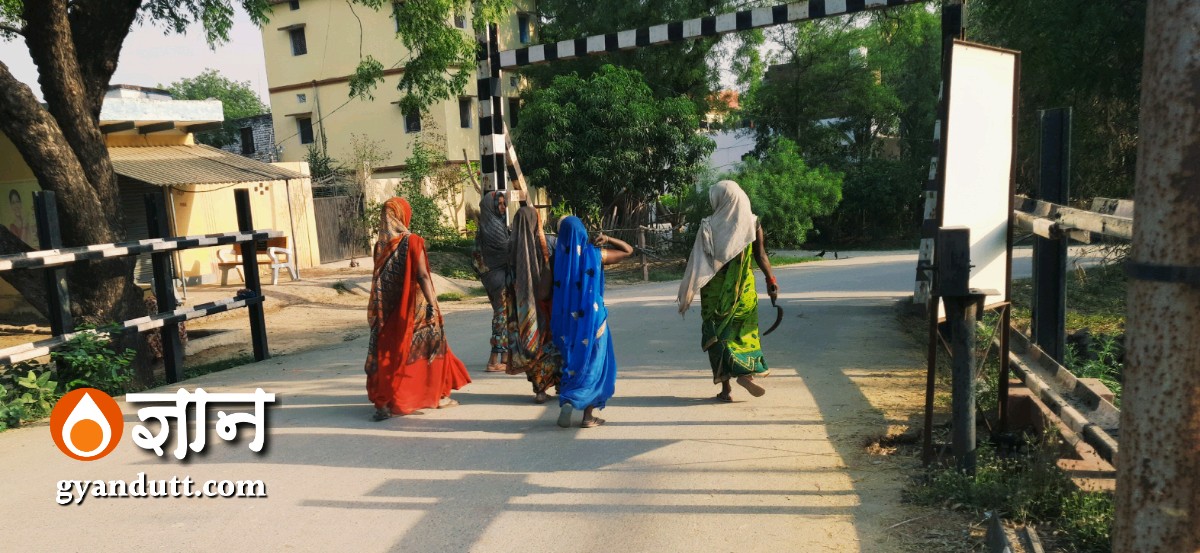 बाकी फसल निपट गयी है। आजकल गेंहूं की कटाई और थ्रेशिंग चल रही है। औरते सवेरे सवेरे अपना अपना हंसिया और एक थैला जैसा कुछ लिये जाती दीखती हैं। आजकल देखा है कि पूरी तरह मुंह ढंक कर कटाई करती हैं। कोरोना का खतरा तो नहीं है, कटाई से उड़ने वाली धूल ज्यादा कष्ट देती है। इन सब के अपने खेत नहीं हैं। सब मजूरी करती हैं। औरते हैंं तो मैं इनसे बातचीत करने रुकता भी नहीं और सामने से चित्र खींचने से भी परहेज करता हूं। अन्यथा सब के पास कथायें हैं। सबके पास कहने को बहुत कुछ है। अपने ब्लॉग लेखन में आंचलिकता का पैनापन लाया जा सकता है। पर आड़े आते हैं मेरी देशज भाषा समझने में तंगी और पत्नीजी का साथ में न होना। वे अगर साइकिल चलाना जानती होतीं तो हम दोनो कहीं ज्यादा देखने-बोलते-बतियाते-लिखते!