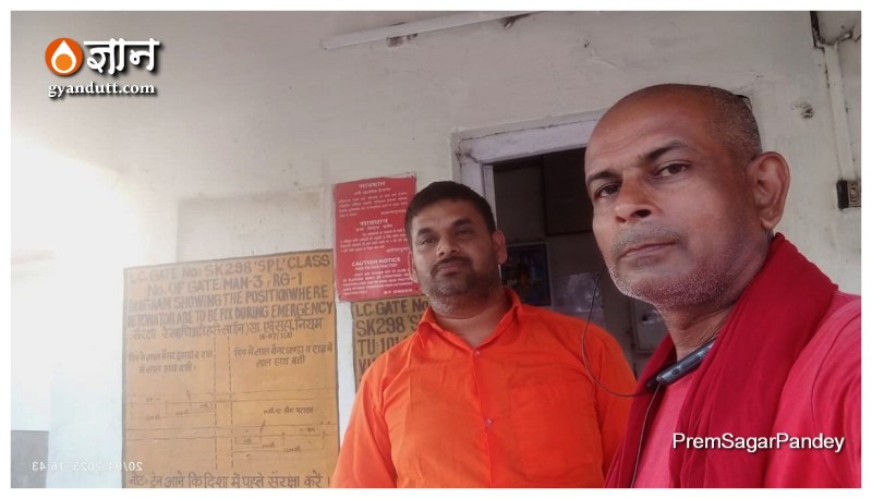 दिन में आराम करने के लिये एक कैबिन मैन (?) जी का आवास मिला। उनका नाम बताया है – सर्वेश सरन। कौन सा स्टेशन या केबिन था, वह प्रेमसागर ने नोट नहीं किया। उनके भेजे चित्र भी मैंने ध्यान से देखे पर उनमें स्टेशन का नाम नहीं दिखता।