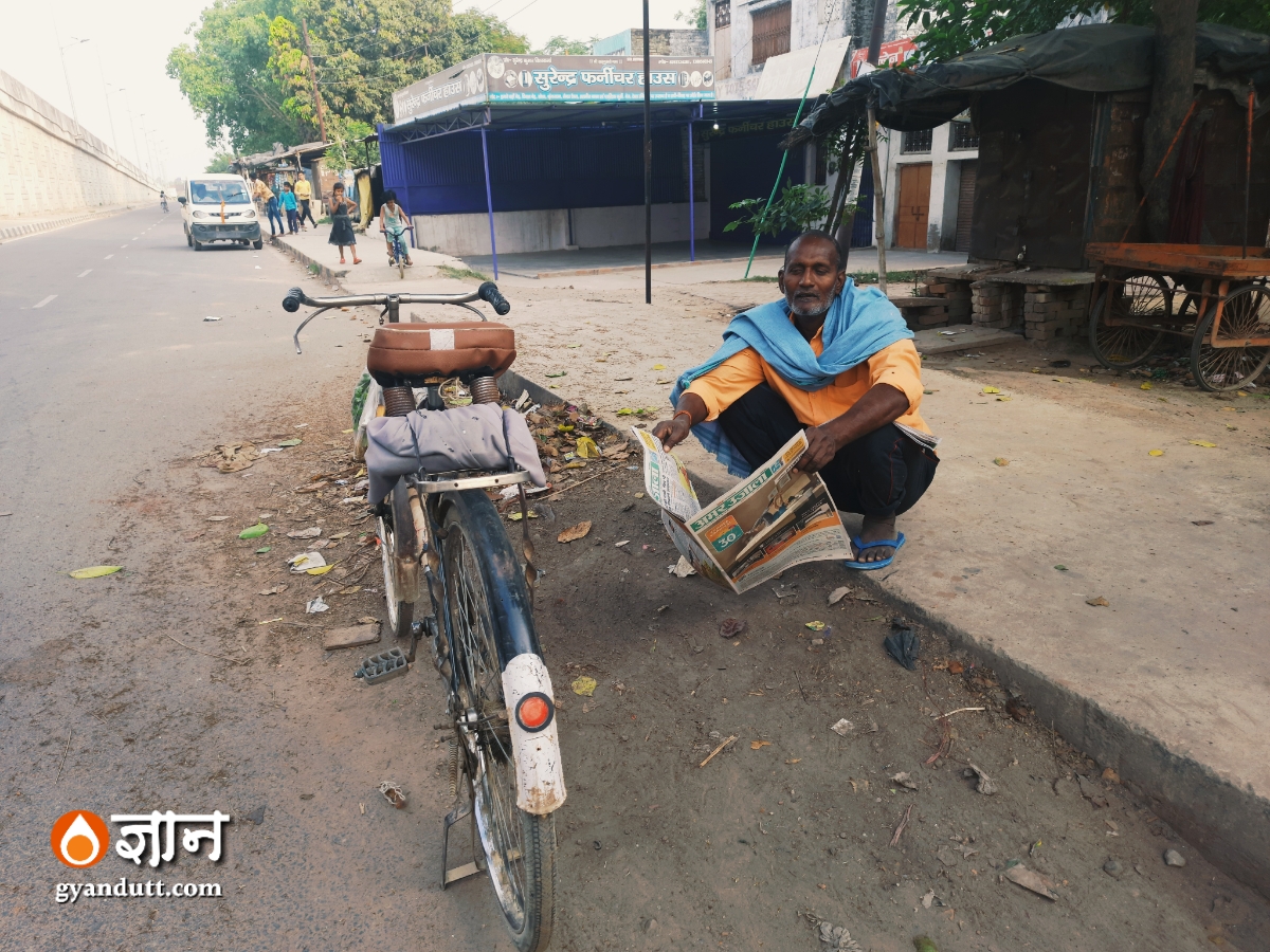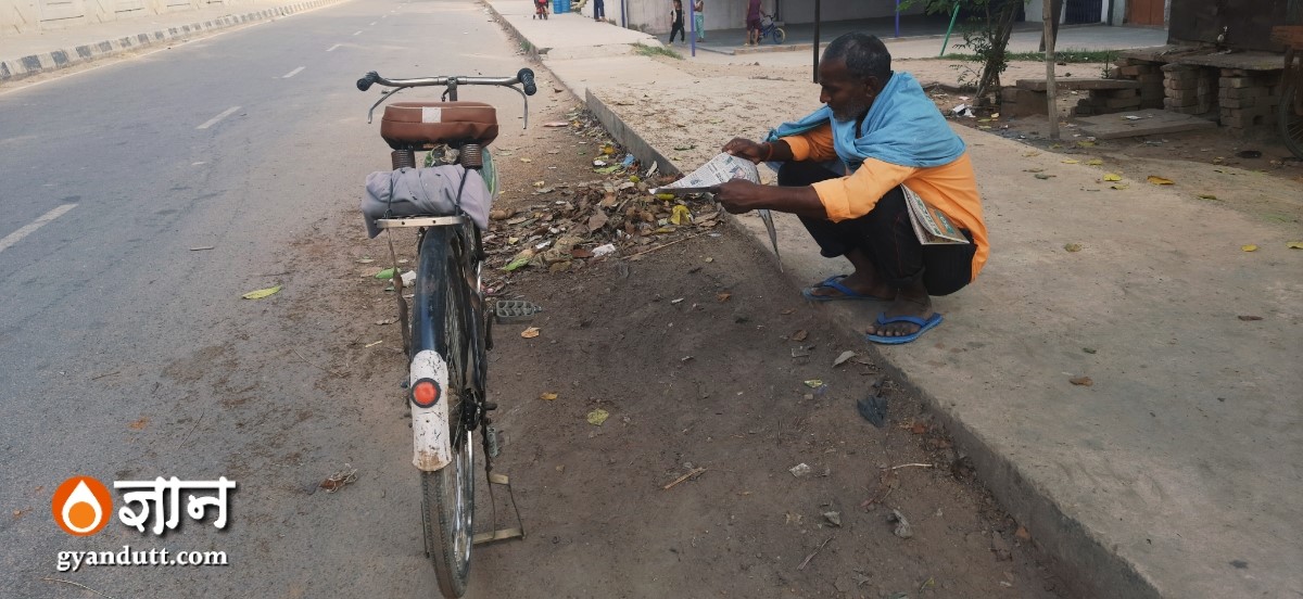अपनी पढ़ाई के बारे में बताया कि आठवीं पास हैं। आठवीं पास, वाचमैन की नौकरी और अन्य कोई ग्रामीण आधार न होने पर भी दत्त चित्त अखबार पढ़ना – शिव जग जी में कुछ खासियत तो है! अन्यथा यहां ग्रेज्युयेट भी खटिया तोड़ते अलसाते रहते हैं। मोबाइल पर वीडियो देखते और गेम खेलते हैं। अखबार-किताब तो छूते ही नहीं। और दूसरी बड़ी बात कि एक वाचमैन अन्य गुणों-दुर्गुणों पर खर्च करने की बजाय दो-ढाई सौ महीना अखबार पर खर्च कर रहा है। … हिंदी अखबार शिव जग यादव जी जैसों की बदौलत आगे भी चलते रहेंगे, भले ही प्रिण्ट और टीवी मीडिया; सोशल मीडिया के प्रभाव में जर्जर हो रहा हो!