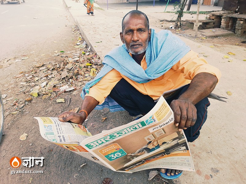 लोग सड़क किनारे अखबार पढ़ते शिव जग यादव को बिना नोटिस किये निकल जा सकते हैं। मुझे उनमें कथा नजर आती है। अपने बारे मेंं यह सोचना भी अच्छा लगा मुझे सवेरे सवेरे। मैं मेग्ज्टर पर सालाना 2000रुपये खर्च करता हूं। कल लगा था कि अखबार का प्रिण्ट संस्करण खरीदने की बजाय मनचाहे अखबार और पत्रिकायें लैपटॉप पर ही देखूंगा। कल सोमवार से यह प्रिण्ट वाला अखबार लेना बंद करूंगा। पर तब शिव जग जैसे चरित्र कैसे मिलेंगे? …