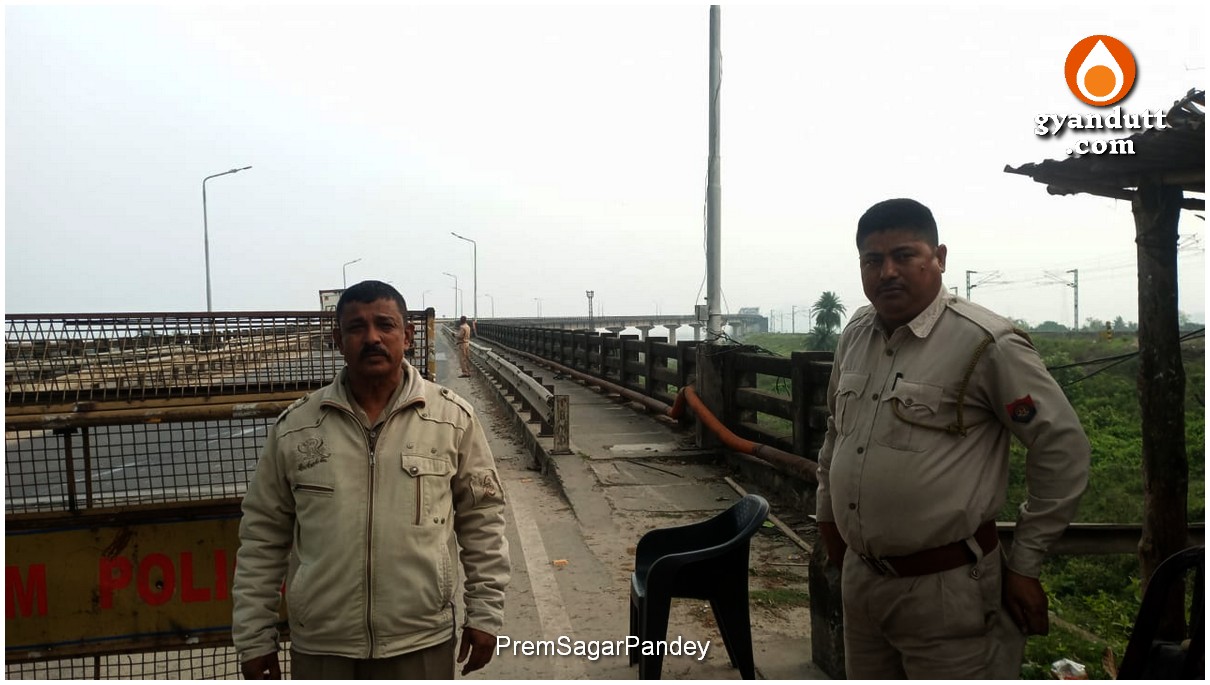 ब्रह्मपुत्र का पुल डबल लेन का है। चार किमी लम्बा। पुल पर से गुजरने के पहले सुरक्षाकर्मी उनका प्रयोजन पूछते हैं। प्रेमसागर ने बताया कि वे इक्यावन शक्तिपीठों की पदयात्रा पर हैं। सुन कर शायद उन कर्मियोंं पर सकारात्मक प्रभाव पड़ा होगा। उन्होने प्रेमसागर को उनका फोटो लेने दिया।