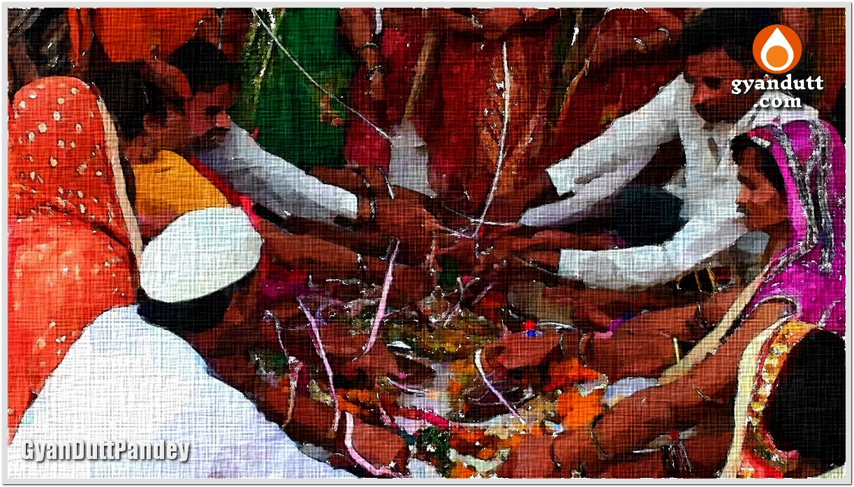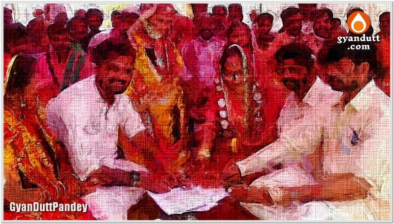सरकारी रेवड़ी की एक नयी काट की पेशकश है सामुहिक विवाह। लड़का-लड़की का आधार कार्ड, और अन्य आंचा-पांचा कागज चेक कर उनके विवाह का पंजीकरण होता है। नीरजा (आजकाल गांवदेहात में भी नाम बड़े नये स्टाइल के रखे जाते हैं। सुरसती, गंगाजली, रामपियारी छाप नहीं) की सामुहिक शादी के रजिस्ट्रेशन में झाम फंसा।