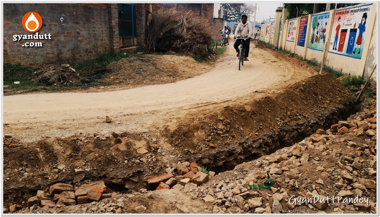 मेरे घर से निकासी ट्रेंच खुदने से बंद है। ड्राइवर साहब को आज जल्दी छुट्टी मिल गयी है। कार बाहर निकल ही नहीं सकती। साइकिल भी मैंने उठा कर खाई से पार कराई है। पर यह सब तो छोटी असुविधायें हैं। मुख्य बात यह है कि साल भर में मेरे घर में पाइप से पानी आने की सम्भावना बन गयी है।