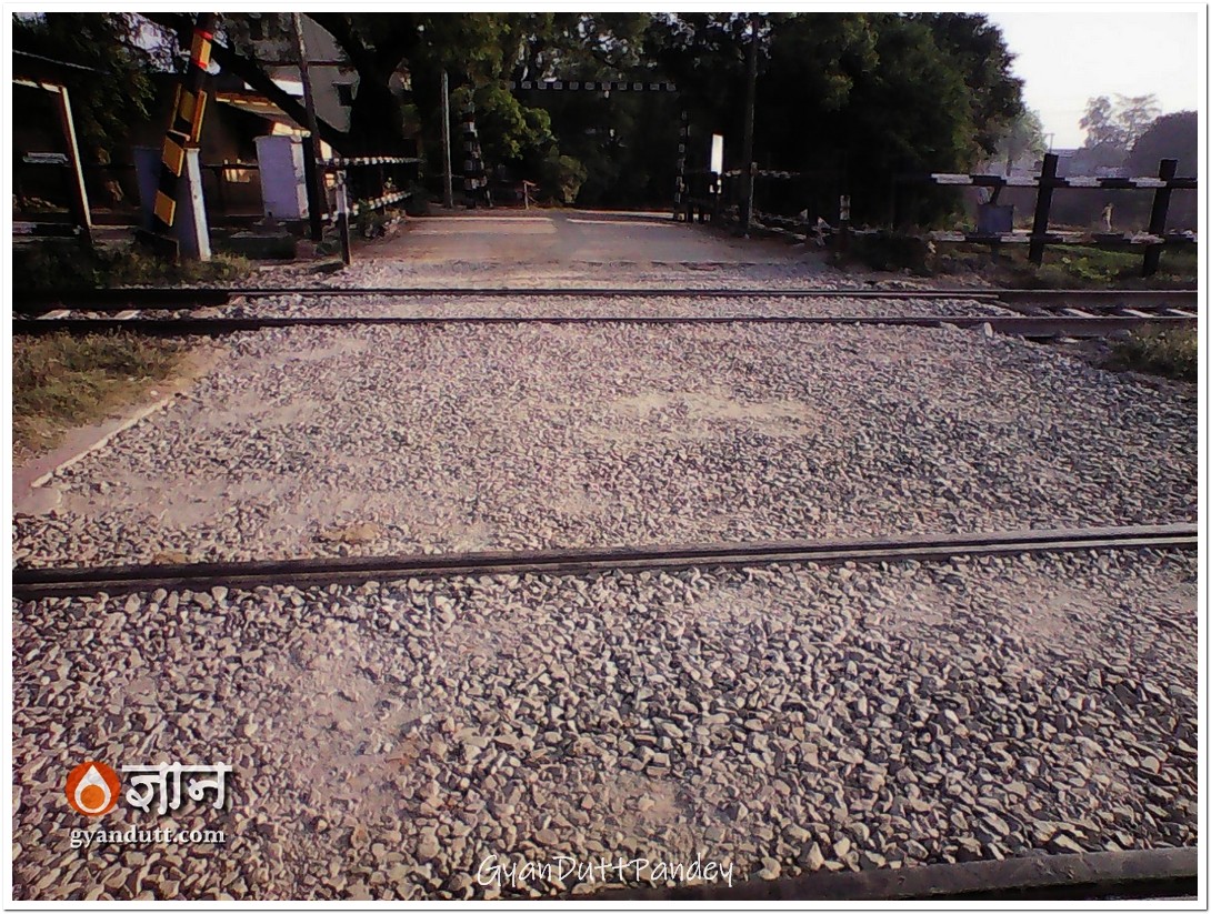 गांव के लोग और मेरे पुराने रेलवे के इंस्पेक्टर लोग बताते हैं कि मेरे निरीक्षण नोट के आधार पर ही यह लेवल क्रॉसिंग अपग्रेड हो कर गेट मैन युक्त बना था। दो दशक पहले की बात होगी वह। अब उसी लेवल क्रॉसिंग पर गुजरते हुये अंदेशा रहता है कि कहीं मेरी साइकिल का बैलेंस न बिगड़ जाये। :-(