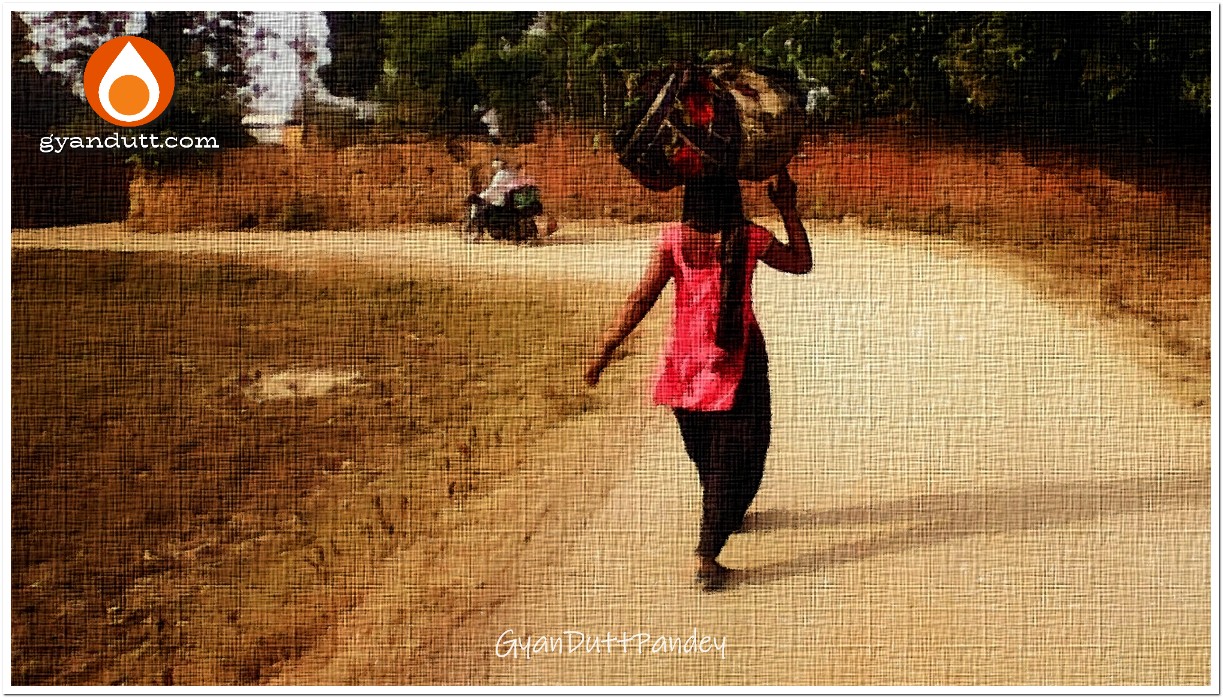 मैं साइकिल चलाते हुये राह चलते लोगों का चित्र लेता हूं। कभी कभी (या बहुधा) सिर पर घास का गट्ठर रखे चलती महिलायें होती हैं। गांवदेहात में यही चित्र आम होते हैं। नोकिया के दो मेगापिक्सल वाले फीचर फोन से खींचे और फिर किसी तरह उभारे चित्र।