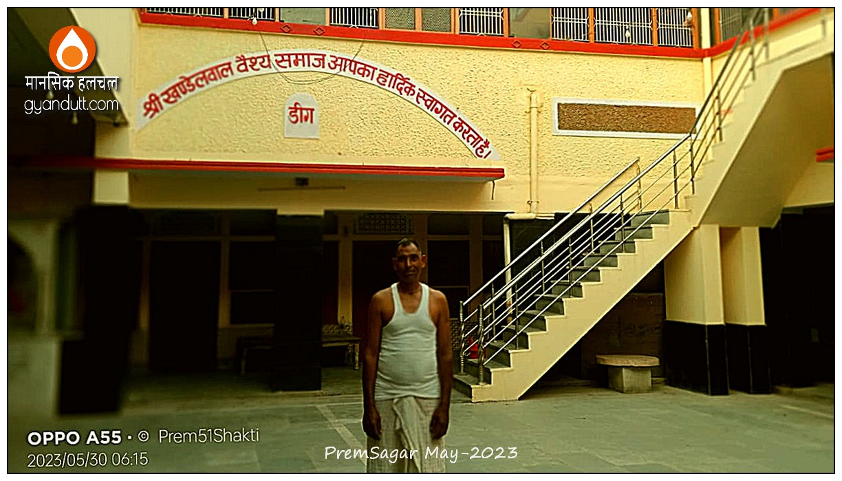 डीग में खण्डेलवाल धर्मशाला में रुके थे प्रेमसागर। पहले चौरासी कोस की परिक्रमा के दौरान भी इसी धर्मशाला में ठहर चुके थे। सस्ता भी था वहां रुकना और आत्मीयता भी थी वहां लोगों से। यह गुण प्रेमसागर में प्रचुर है – लोगों से आत्मीयता बना लेना और उस नेटवर्किंग का अपनी पदयात्रा के लिये भरपूर उपयोग कर लेना। यह गुण उनकी रुक रुक कर बोलने, स्थानों और लोगों ने नाम गड्डमड्ड कर देने और भूगोल की अपर्याप्त जानकारी आदि की कमियों को बखूबी कवर-अप कर लेती हैं।