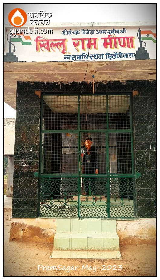 “इस इलाके में स्वतंत्रता सेनानियों और शहीद सैनिकों की बड़ी इज्जत है भईया। जगह जगह उनकी मूर्तियां लगाई गयी हैं। एक फोटो मैंने आपको भेजी भी है।” वह फोटो किसी शौर्यचक्र विजेता शहीद खिल्लू राम मीणा की प्रतिमा की है। उस स्थल का कोई दुरुपयोग न हो, इसके लिये कक्ष को जालीदार जंगले से कवर भी किया हुआ है।