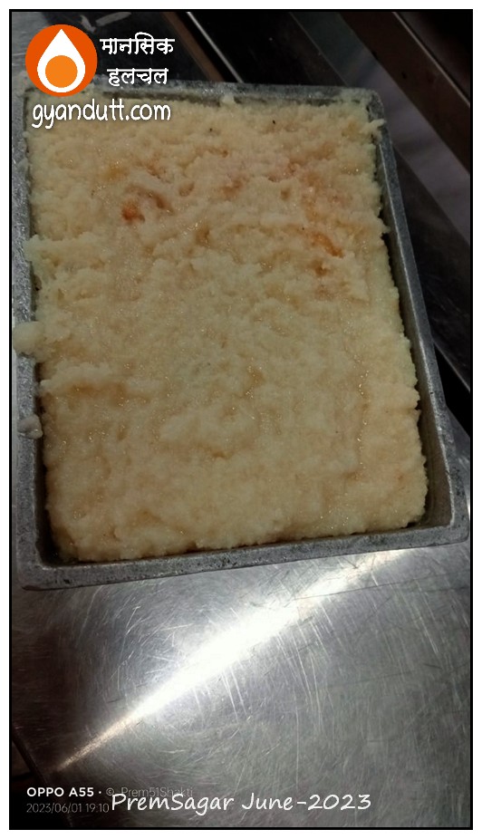 बाबा प्रेमदास स्वीट्स वाले बंधु ने प्रेमसागर के लिये चारपाई गद्दा, ओढ़ना आदि की व्यवस्था कर दी। “भईया छेना की मिठाई जिसे कलाकंद कहते हैं यहां वह बहुत बढ़िया थी। वह हमें ‘बलबस्ती (जबरी आग्रह कर)’ खिलाई। और नहीं तो एक पाव खाई होगी मैंने।”
