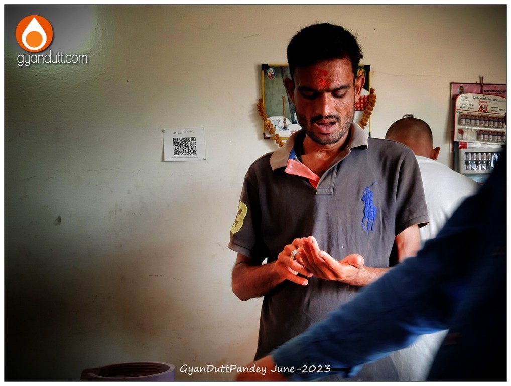 अंजनी कुमार बताते हैं कि उनका गांव मटकी पुर है। यहां से चार पांच किमी दूर। दूध सेण्टर पर देने के साथ हाल-चाल-बतकही में पंद्रह बीस मिनट गुजारते हैं। परिवार धार्मिक है। एक दिन लघुशंका के समय जनेऊ कान पर नहीं चढ़ाया तो वह अशुद्ध हो गया। “ओके निकारि क पोआरि दिहा।” पर नया जनेऊ मिला नहीं। नहाते समय बाबू जी ने उघार बदन बिना जनेऊ के देख लिया तो काफी सुनना पड़ गया।