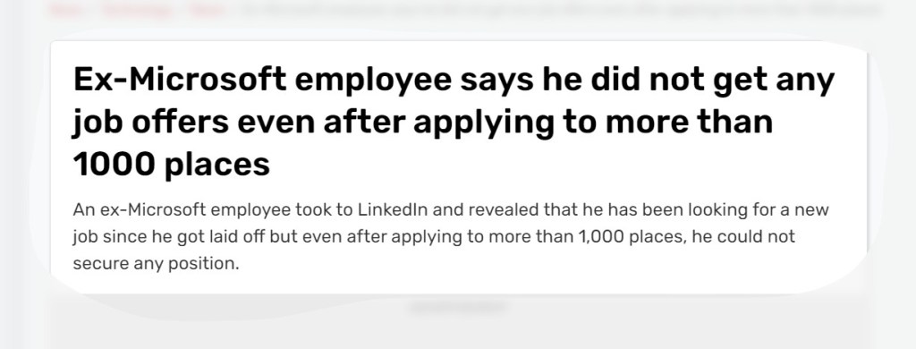 आज अखबार में एक और खबर है। माइक्रोसॉफ्ट का एक कर्मचारी जिसकी छंटनी हो गयी थी, ने 1000 जगहों पर अप्लाई किया। मार्च से अभी तक उसे कोई नौकरी नहीं मिली है।