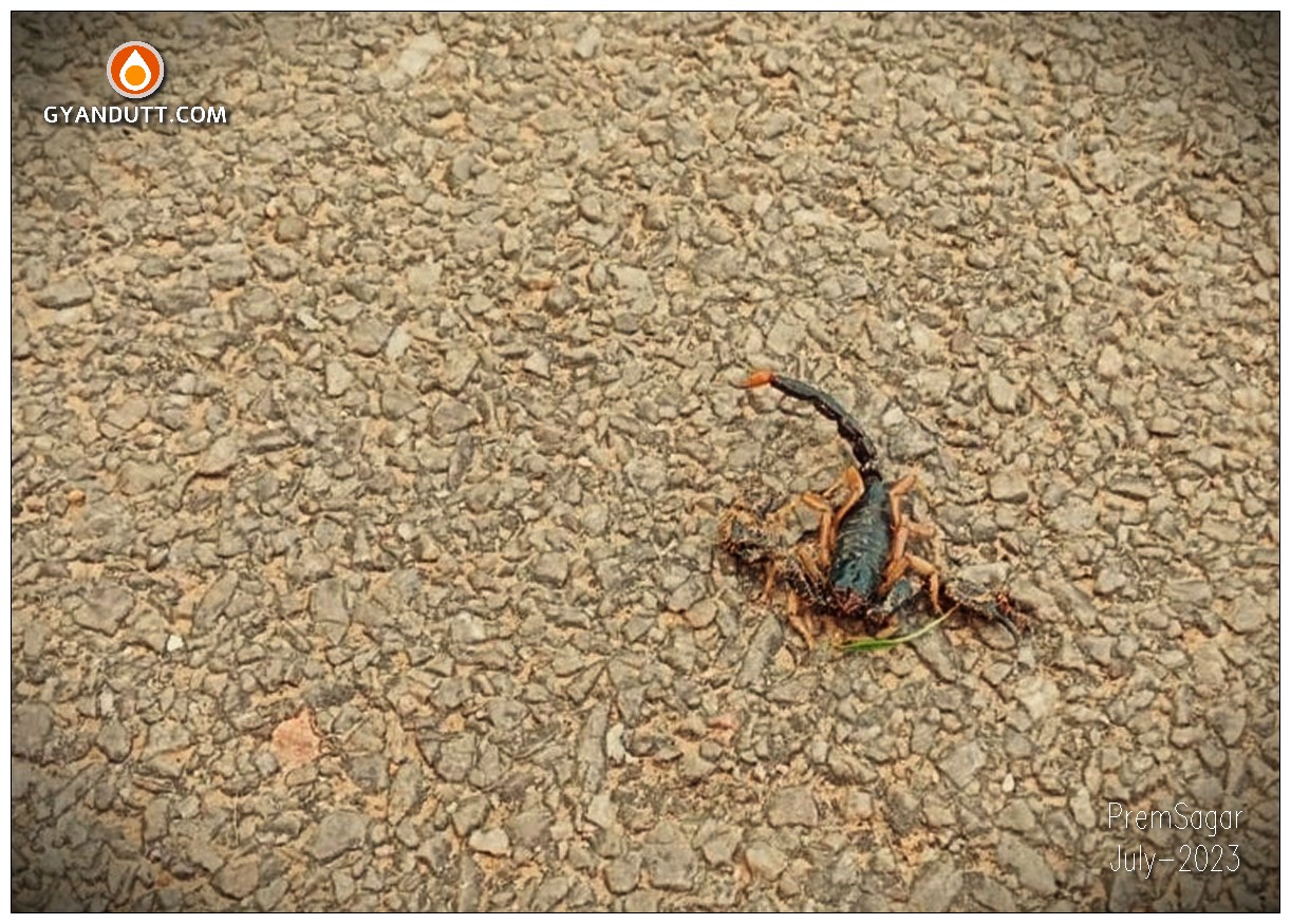 “खेती देखी भईया। मूंगफली, ग्वारफली, फूलगोभी, बाजरा और मिर्च उगाते दिखे किसान। एक जगह अरौंजी का झाड़ का चित्र लिया। इसकी खासियत यह है कि जब यह हरी भरी होती है तो इसे चबा कर बकरी खूब दूध देती है। पर अगर सूखी जाली अरौंजी खा ले तो बकरी मर जाती है। एक जगह बड़ा बिच्छू दिखा। लोग बताये कि इसके डंक से आदमी मर जाता है। पांच मिनट में ही जान चली जाती है। इससे बचने के लिये लोग अपने घर की बाउण्ड्री के नीचे बिजली का करेण्ट देते हैं। उससे यह बिच्छू मरता तो नहीं पर दूर भाग जाता है। सांप भी हैं जहरीले यहां पर। लोग उन्हें मार देते हैं। … जमीन यहां बहुत सस्ता है भईया। पंद्रह-बीस हजार रुपया बीघा। वह भी सड़क के किनारे की जमीन। पानी ज्यादा होता तो खेती ज्यादा होती और जमीन के दाम भी ज्यादा होते।”