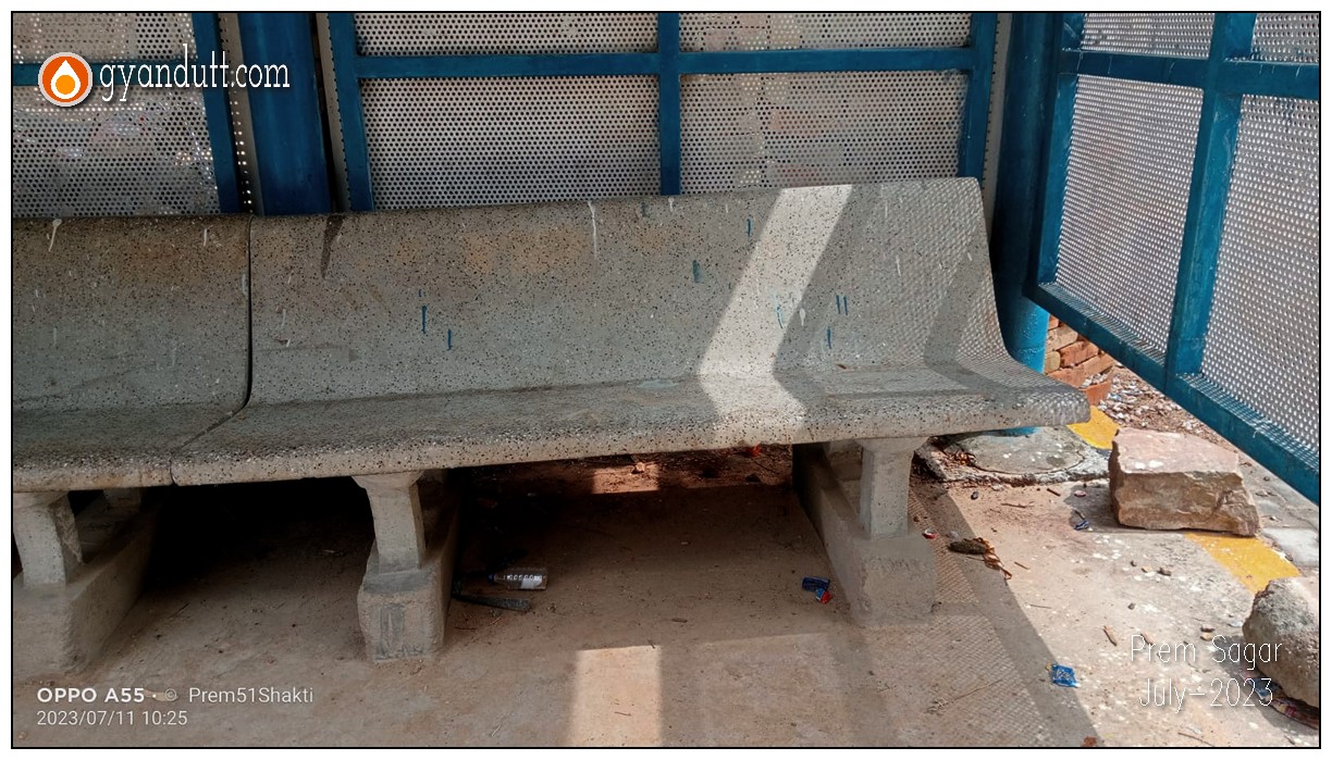 रात के भोजन के रूप में हल्दी-चीनी-नमक मिला चावल और सोने के लिये बेंच पर गमछा बिछा कर बैग का तकिया लगाया बिस्तर! यही सही पदयात्रा है।