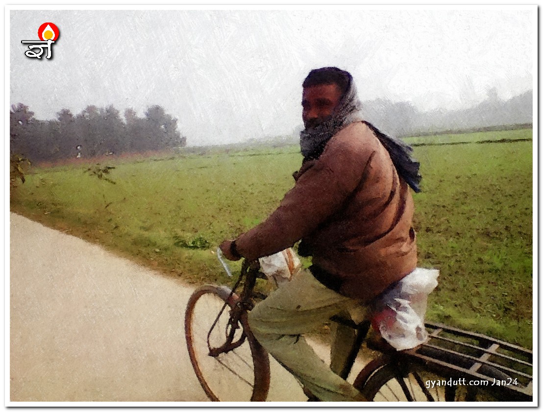 मेरे घर के बगल से वह आगे जाता है। एक बार फिर सर्दी बढ़ने और ‘सुर्रा हवा’ चेहरे पर लगने की बात कहते हुये। वह आगे बढ़ने के पहले अपना मफलर एक बार कसता है। मैं घर में आ कर अलाव या ब्लोअर की शरण में जाने वाला हूं। वह दिन भर काम करने जा रहा है। मैं फिर भी शायद असंतुष्ट जीव हूं और वह दस हजार महीना कमाने पर आत्मन्येवात्मनातुष्ट!