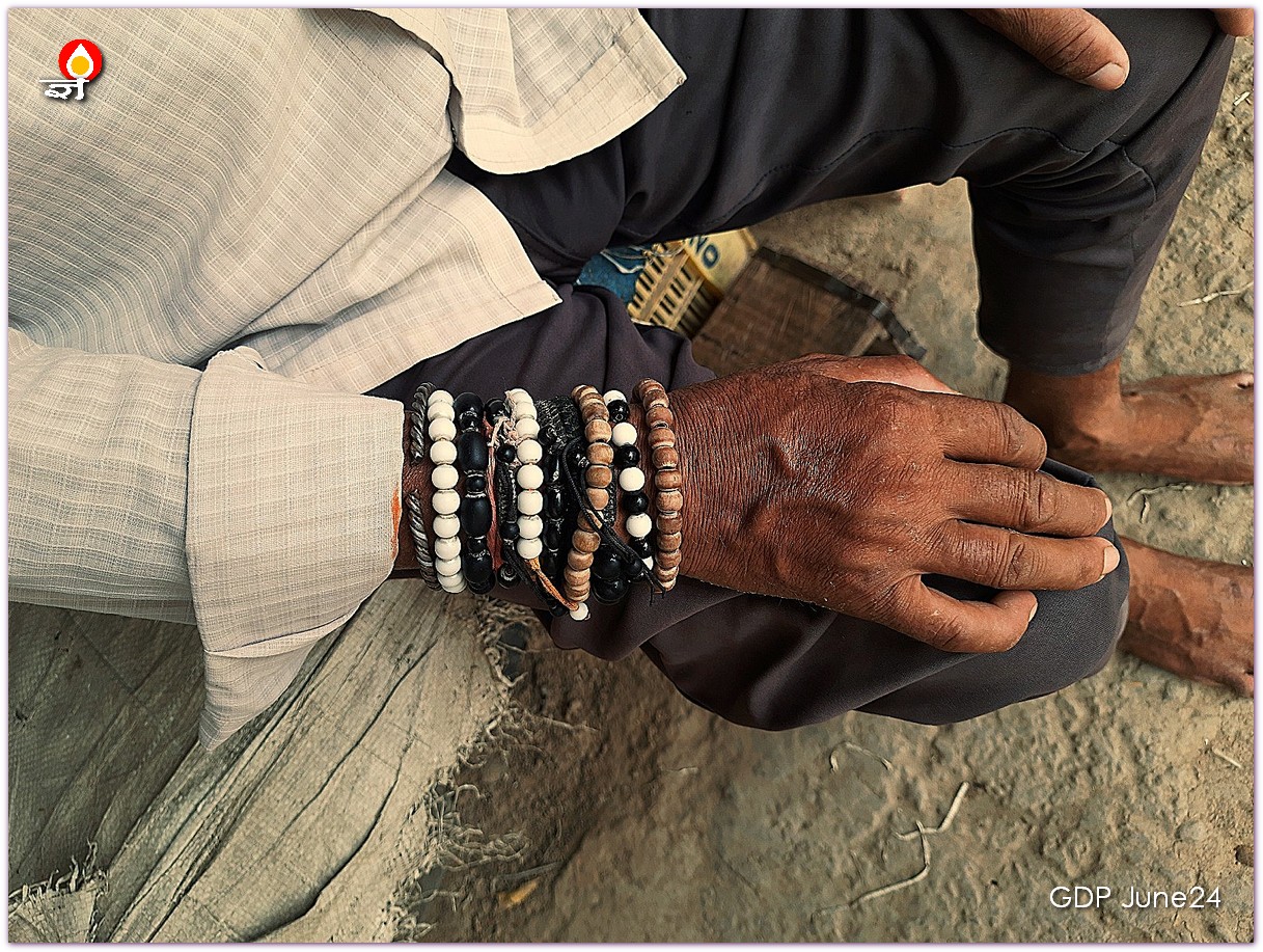 जीतेंद्र के हाथ की मालाओं पर चर्चा में आधा घूंघट किये देहरी पर बैठी जोखन की मेहरारू ने कहा कि यह तो कुछ नहीं है। गले में ये खूब सारी करिया माला पहने रहते थे। मारे गर्मी के वे अभी उतार दी हैं। गर्मी भी इस साल गजब पड़ रही है।
