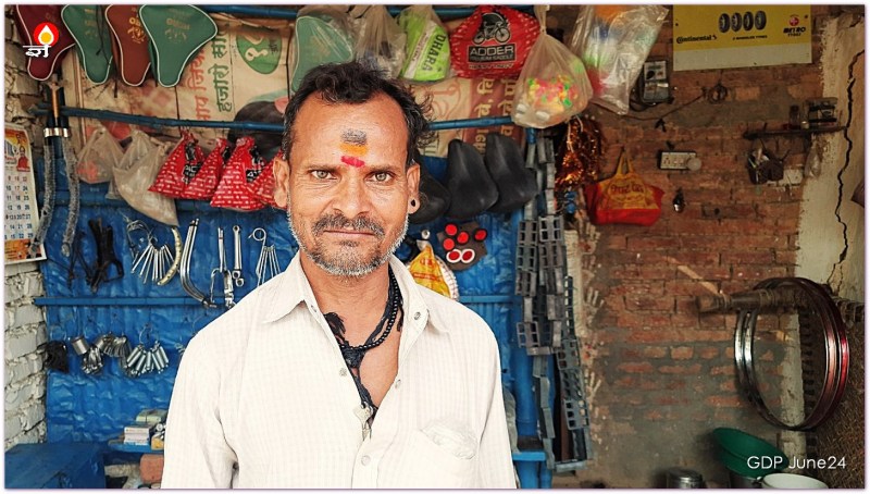 जोखन की साइकिल दुकान-कम-घर पर गया था साइकिल में हवा भरवाने। जोखन की मेहरारू बाहर बैठी थीं। बताया कि जोखन भोजन कर रहे हैं। खत्म करते ही आते हैं। “थोड़ा देर बईठि जा जीजा।” उन्होने कुर्सी दिखाई। मैं पास की पटिया पर ही बैठने जा रहा था पर कहने पर कुर्सी पर आसीन हो गया। इतने में एक सज्जन आये और जोखन की मेहरारू से बोले – आजुऔ मोदी हयेन। (आज भी मोदी हैं)।