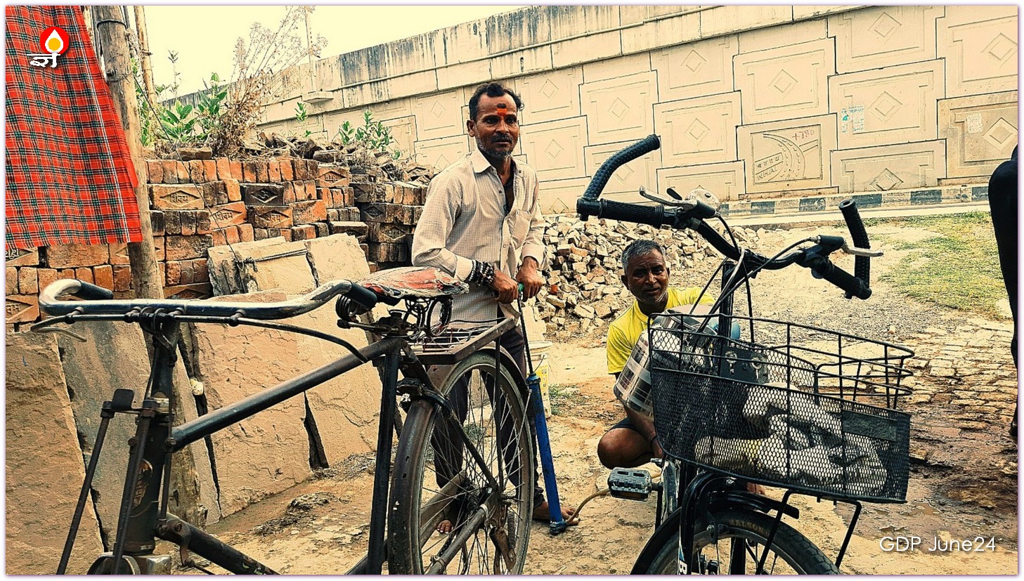 महीना भर लू की तेज गर्मी के बाद आज कुछ राहत थी। इसी लिये साइकिल ले कर बाहर निकला और हवा भराने के लिये जोखन के यहां जाना हुआ। गर्मी कम होने से ही जीतेंद्र मुझे मिले। गर्मी कम होने से ही कुछ लिखने का मन बना। आगे मानसून आये और दिमाग चलने लगे; यही मनौती है बाबा से। … अब आप बाबा विश्वनाथ समझें या बाबा कालभैरव; आपकी श्रद्धा पर है।