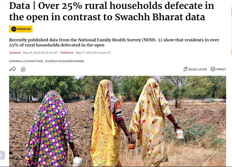 सरकार के नेशनल पब्लिक हेल्थ सर्वे (NPHS-5) के अनुसार ग्रामीण भारत में 25 प्रतिशत खुले में शौच की प्रथा है। यहां अपने गांव में तो यह मुझे नब्बे प्रतिशत लगता है।