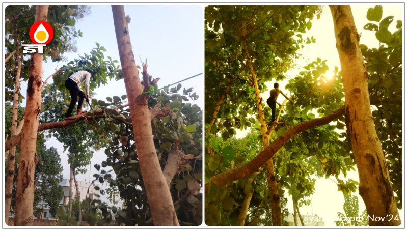 चपल हैं गोविंद और राजा। सुग्गी ही उन्हें बुला लाई पेंड़ छांटने के लिये। वे लप्प लप्प चढ़ गये पेड़ों पर। उनको चढ़ता देख विकासवाद के सिद्धांत पर मेरा यकीन और पुख्ता हो गया। मानव निश्चय ही वानर से ही आया है। हमारी जरूरतों के मुताबिक टहनियां छांटी उन्होने। एक भी कुल्हाड़ी का वार निरर्थक नहीं था उनका। अपनी ऊर्जा का सधा हुआ उपयोग किया उन्होने।