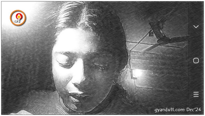 [चित्र – चिन्ना, वीडियो कॉन्फ्रेसिंग में। मैं उसे रोज शाम के समय पढ़ाया करता हूं।]