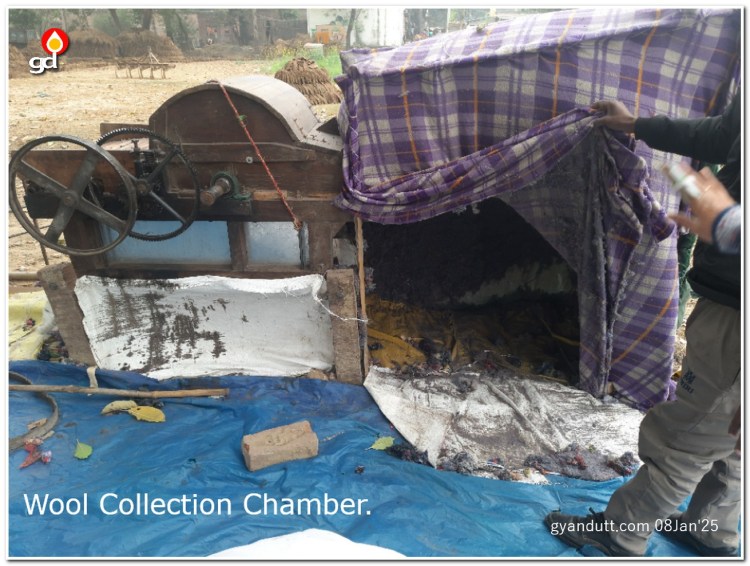 ताहिर के सेट-अप में एक डीजल इंजन से चलती मशीन है। उसमें पुराने कपड़े काट छांट कर फीड किये जाते हैं और दूसरी ओर एक कपड़े के चेम्बर में मशीन द्वारा बना ‘ऊन’ इकट्ठा होता है। उस ऊन को निकाल कर उससे रजाई गद्दे की तगाई ताहिर हाथ से करते हैं। सिस्टम साधारण है, पर भारत की गरीब जनता के लिये यह वरदान हो सकता है। पुराने कमीज, पैंट, लूगड़े, धोती, लुंगी आदि से रजाई बन जाती है। कपड़े से ऊन बन जाता है तो ऊन को स्टफ कर कई चीजें बनाई जा सकती हैं।