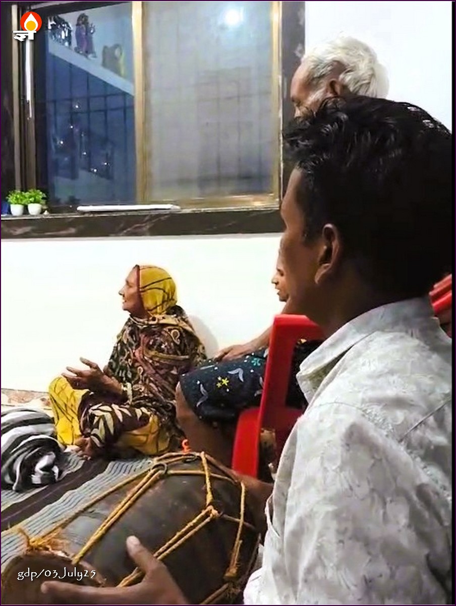 रात में पुष्पेश जी के घर में शाम की आरती हो रही है। प्रेमसागर ने वीडियो बना कर मुझे भेजा है। बहुत सुखद लगता है वह देखना। लोग जमीन पर दरी पर बैठे हैं पूजा घर में। पुष्पेश एक ढोलक बजा रहे हैं। झल्लक की भी आवाज आ रही है। पुष्पेश के पिताजी शायद पालथी मार कर बैठ नहीं सकते। वे कुरसी पर बैठे हैं। लगता है मैं कभी पुष्पेश जी के घर जाऊंगा तो नर्मदा तट पर तो हो आऊंगा, पर आरती में मेरे लिये भी एक कुर्सी लगानी पड़ेंगी। उनके पिताजी तो पचासी के हो कर कुर्सी की जरूरत वाले बने हैं। मैं तो सत्तर की उम्र में भी पालथी मार कर नहीं बैठ पाता।