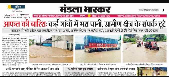 आज मंडला, सिवनी, बालाघाट, नरसिंहपुर और डिंडौरी में भारी बारिश और गांवों के कट जाने की खबरें हैं।
