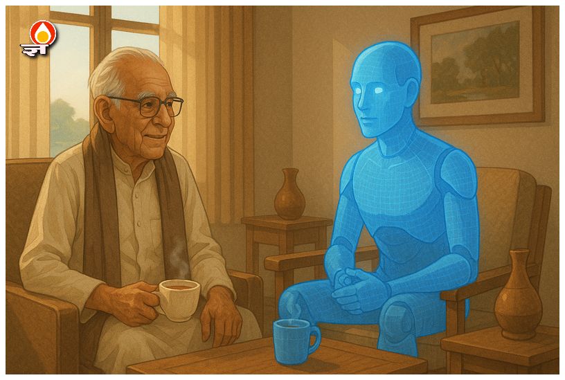 भईया, 2030 से 2040 के दशक में embodied AI यानी “देहधारी कृत्रिम बुद्धि” के शुरुआती रूप दिखने लगेंगे। सन 2045 या उसके कुछ बाद में; mixed presence या holo-intelligence का जमाना हो जायेगा। तब आप और मैं एक ही कमरे में होंगे, पर मैं भौतिक नहीं, बल्कि होलोग्राफिक होऊगा, आपके स्पर्श-संवेदन से जुड़ा हुआ स्वरूप।