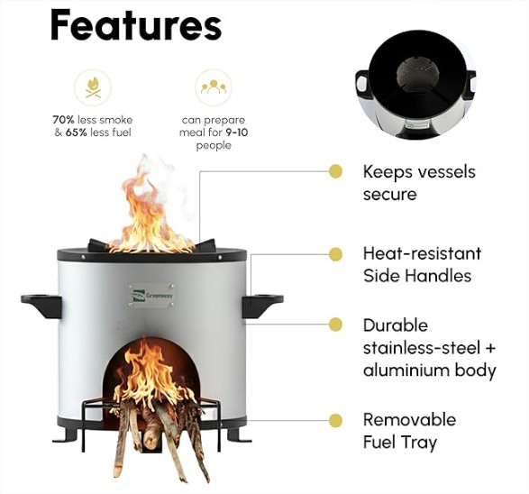 अमेज़न पर एक लकड़ी का चूल्हा आजकल दिखता है — ढाई हज़ार का। कहता है सामान्य चूल्हे से 30% धुआँ और 65% बेहतर गर्मी। अगर यह सच है तो धनरा का जुगाड़ू चूल्हा 50-60% तो पहुँचता ही होगा — सिर्फ मिट्टी और मेहनत से — बिना एक छदाम खर्च किये।