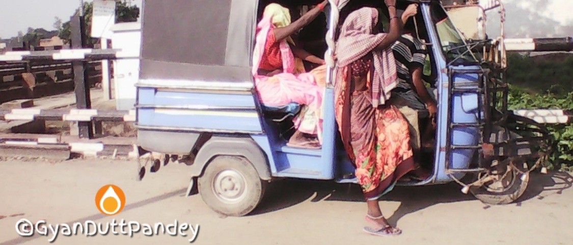 ऑटो वाले के पास बैठी महिला ने सुरती बनाई। खुद ली और ऑटो वाले को भी खिलाई। दांत के नीचे सुरती दाब कर ऑटो वाला पीछे जा कर एक रस्सी से ऑटो के इंजन को स्टार्ट किया। वापस आ कर ऑटो ले कर रवाना हुआ।