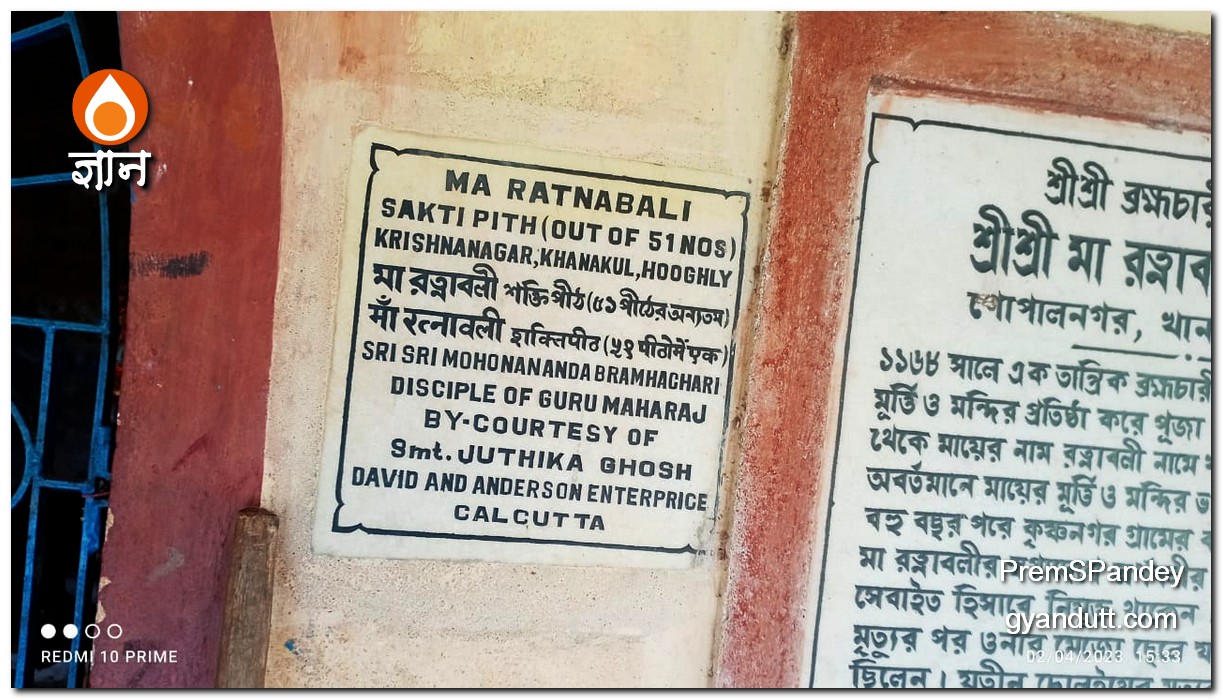 मोटरबोट वाली फेरी से उतर कर विभाषा और कपालिनी शक्तिपीठों के बारे में पता किया प्रेमसागर ने। शाम होने को है। जल्दी के लिये एक ऑटो में बैठ वे तामुलुक स्टेशन के पास के विभाष देवी का मंदिर है गूगल नक्शे में। फेरी घाट के समीप है कपालिनी, भीमरूपा/बर्गाभीमा मंदिर। ये दोनो शक्तिपीठ के नाम से जाने जाते हैं। दोनो के दर्शन करने थे। तामुलुक स्टेशन के पास वाले मंदिर के दर्शन किये। उसके बाद पता चला कि कपालिनी माता का मंदिर तो बंद हो चुका है। तामुलुक से प्रेमसागर लौट आये दक्षिणेश्वर।