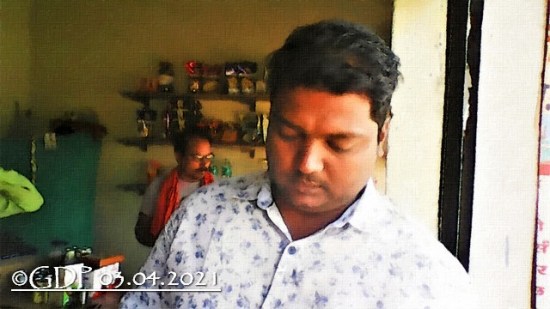 लगभग एक घण्टा मैं और मेरी पत्नीजी उनके साथ रहे उनके दफ्तर में। इस बीच उनके भृत्य राजेश पाण्डे और उनके भतीजे प्रशांत उनके पास आये। राजेश एक बनियान नुमा टीशर्ट में थे। चाय-नाश्ता कराने पर मैं उनका चित्र लेने लगा तो राजेश को डपट कर सूर्यमणि जी ने साफ कमीज पहन कर आने को कहा। पतले दुबले राजेश का चित्र तो मैंने कमीज में ही खींचा। प्रशांत जी को तो मैं पहले से जानता हूं। उनके बारे में सूर्यमणि जी की परिचयात्मक टिप्पणी थी – “ये मेरे अर्जुन हैं!”