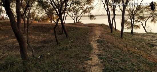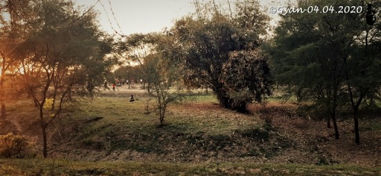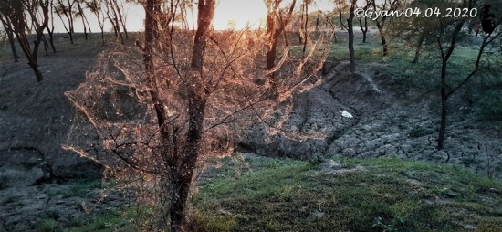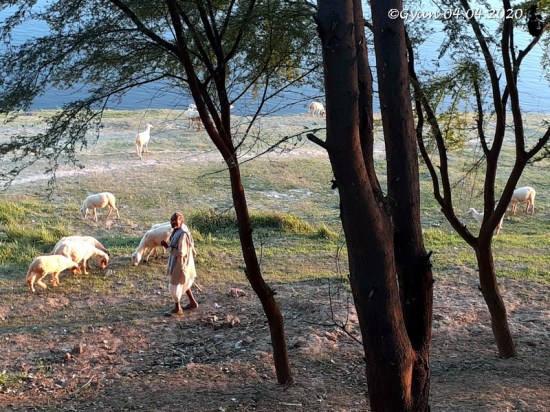 मैं अकेला था द्वारिकापुर में गंगा किनारे। सूर्यास्त होने में पंद्रह मिनट बचे थे। उस दौरान नदी, बबूल, उखमज, मकड़ी के जाले, शाम के समय अपना रेवड़ हाँकते गड़रिये, बालू ढ़ोने वाली नावें (जो काम रुका होने के कारण नदी किनारे पार्क की हुई थीं और उनके आसपास कोई नहीं था) आदि को मोबाइल के कैमरे में कैद कर रहा था। इस बीच नजर फिराई तो किनारे ऊचाई पर ये दो अधेड़ सज्जन अचानक कहीं से प्रकट हुये दिखे।