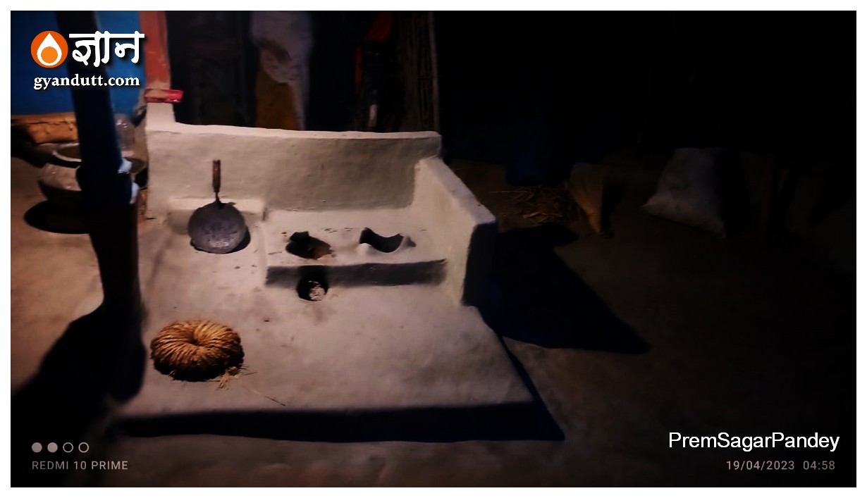 सत्यम के घर का मिट्टी का दो बर्तन वाला चूल्हा बड़ा आकर्षक लग रहा है। रात में फोटो बहुत साफ नहीं है, पर एक चित्र बहुत बोलता है बिहार की गांव की जिंदगी के बारे में।