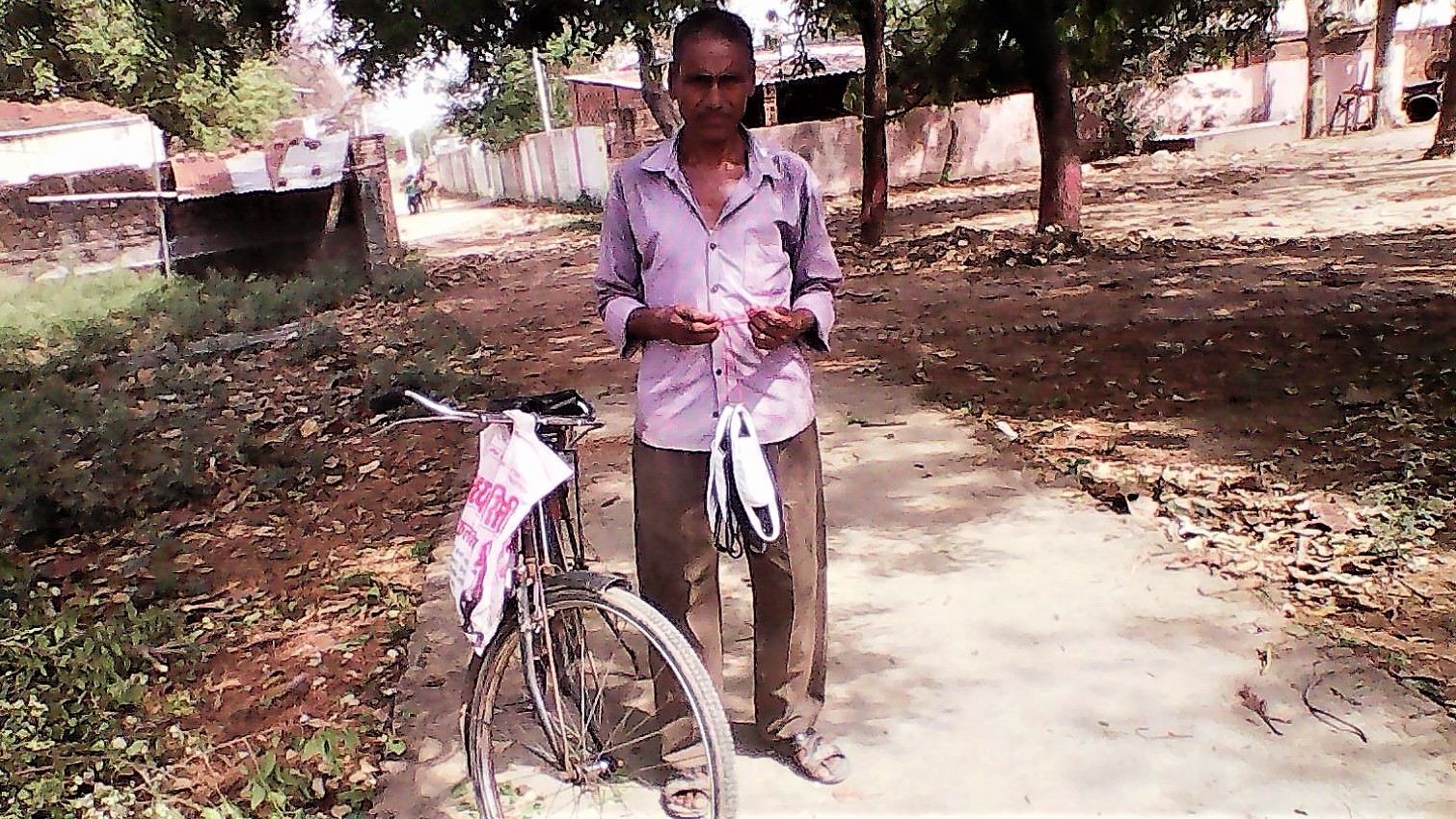 देखा कि एक साइकिल सवार हैंडिल में एक झोला लटकाये, हाथ में साधारण से मास्क लिये है। चाइनीज वाइरस के जमाने में मास्क की मार्केट की आपूर्ति कर रहा है।