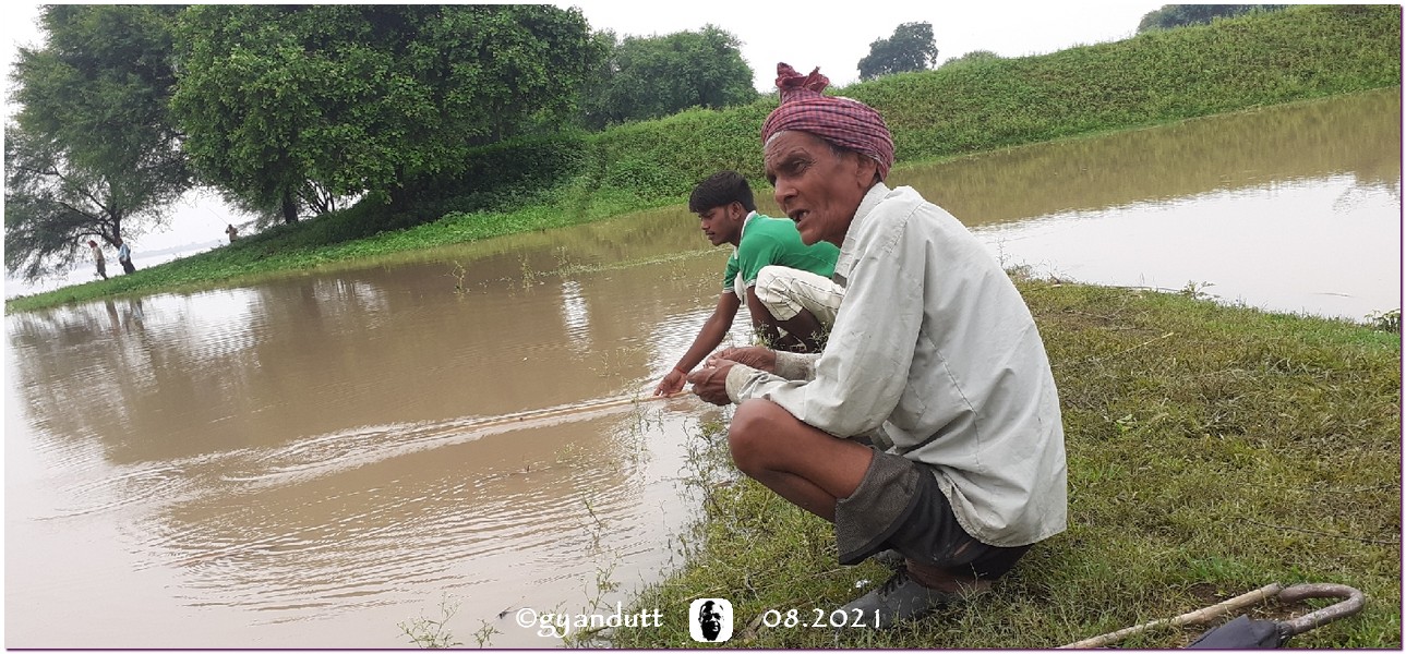 मुझे कोई इस तरह की घरेलू बात कहे, सुनाये – यह कुछ अटपटा लगा। और वह भी एक महिला? शायद बाढ़ की विभीषिका अपने घर के आगे देख कर व्यक्ति सन्न हो जाता है और एक अपरिचित से भी मुखर हो जाता है अपना दुख सुख बताने के लिये।