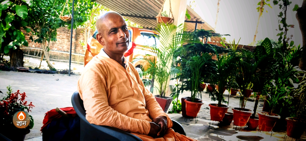 पीछे कांधे पर लेने वाला यह पिट्ठू बैग और एक दहिमन की लकड़ी की डण्डी – यही उनका सामान है। कपड़े न्यूनतम हैं। अपनी पोटली में उन्होने सोठउरा, तिल, गुड़ और गोंद का लड्डू और कुछ सूखे मेवे रखे थे। वह मुझे दिखाये भी और चखाये भी।